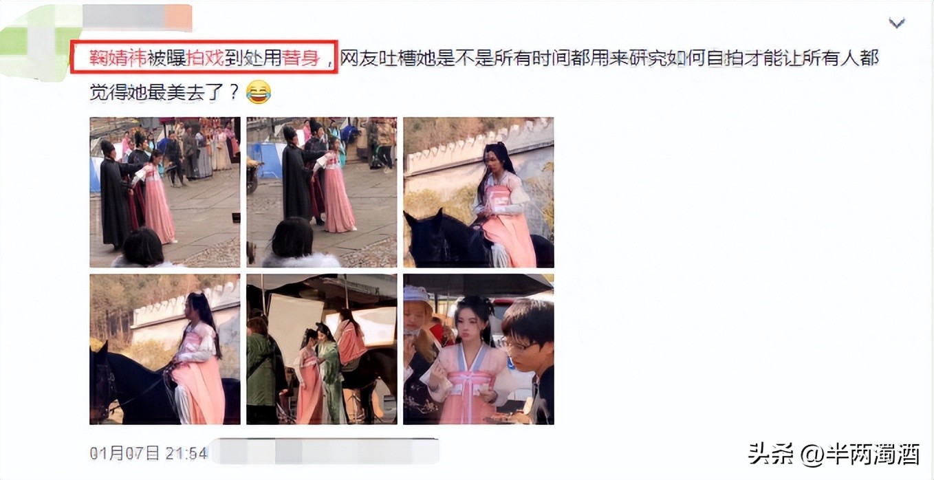 网上曾爆料最多的要数鞠婧祎,除了露脸都要用替身,像在平常不过的吃饭喝水都得需要替身完成,光替身人数就得至少五六个。