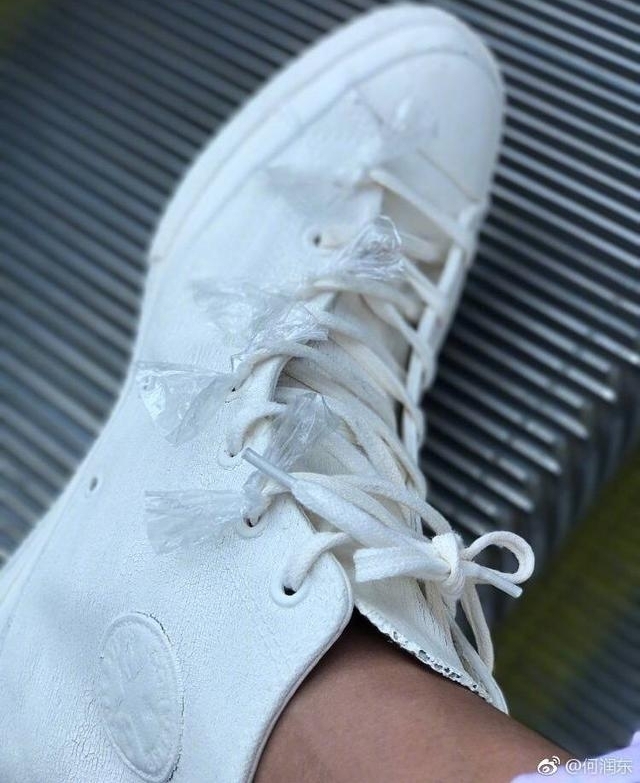 直到看了最后一张照片才知道,原来是在鞋带上绑塑料袋。快告诉我这是什么梗?看得小编真是丈二和尚摸不着头脑了。