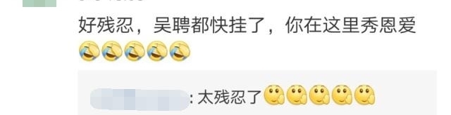 正在追剧的粉丝们纷纷调侃:每天都活在吴聘要死了的恐惧中。 还有嫌弃何润东的:吴聘都快挂了,你在这里秀恩爱,太残忍了!