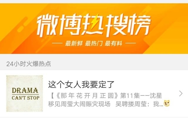 该剧从一播出就频频上热搜,最近一次上热搜是里面的一句台词,那就是:这个女人我要定了!为了周莹,向来有君子之称的吴聘也强买强卖了一次,并霸气地说出这句话,惹得周莹感动万分,两眼直愣愣地望着吴聘,情愫开始慢慢产生。