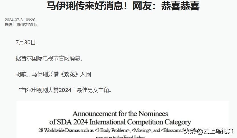 信息来源:杭州交通9182024-07-31马伊琍传来好消息!网友:恭喜恭喜