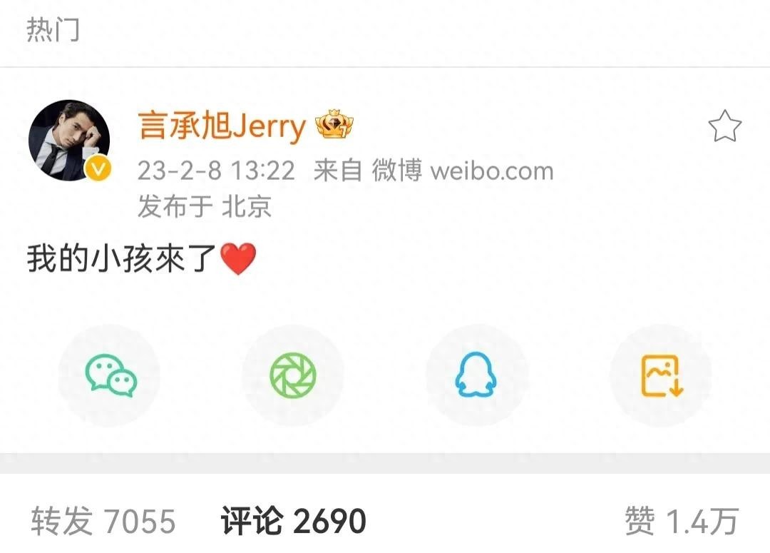2月8日,46岁一直单身未婚的言承旭突然发文:“我的小孩来了!”瞬间引起网友们热议。