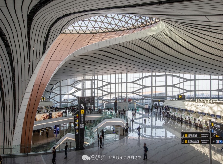 大兴国际机场采用“双层出发车道边”设计,是四层航站楼,出发和到达分别是两层。一层是国际到达;二层是国内到达;三层是国内自助,快速通关;四层是国际出发和国内托运行李。再加上地下的轨道交通可以很方便地把旅客送到楼内,通过地下一层的直梯直接到达出发层。