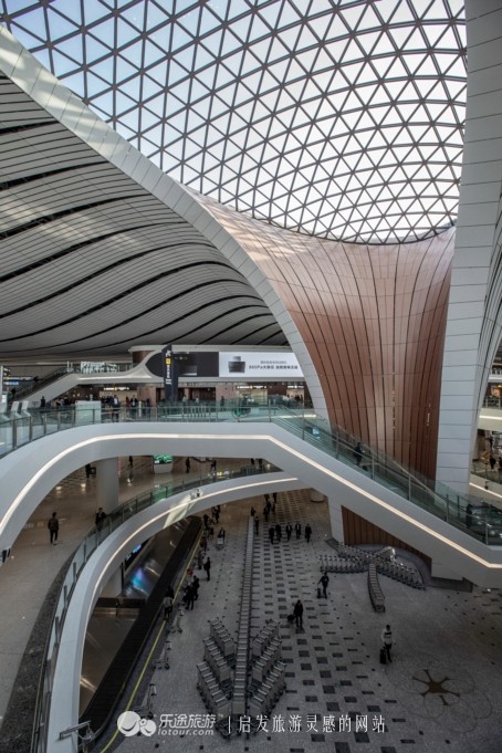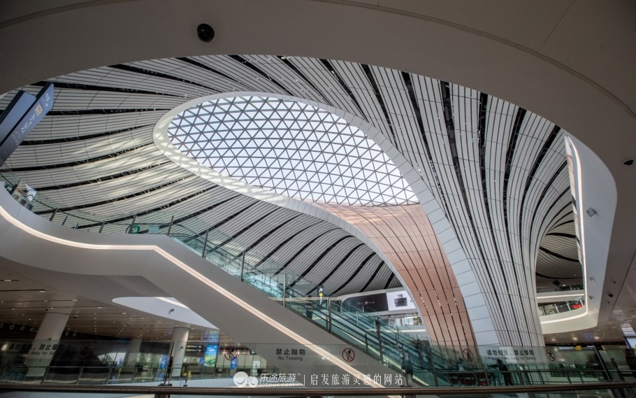 扎哈在中国的第一个作品是广州大剧院 。此后的北京银河SOHO建筑群、南京青奥中心、香港理工大学建筑楼等也都出自她手。我认为机场最为亮眼的就是候机大厅和走廊的天花设计,站在四楼的观景台上,看着那由曲线、不规则形状和不同色彩构成的梦幻空间,只能是赞叹大师的奇思妙想!