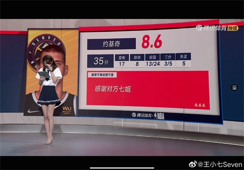 小七,微博名叫王小七,因为喜欢勇士队,所以经常解说勇士的比赛。小七给人的感觉就像邻家女孩一样清新可爱,小家碧玉。