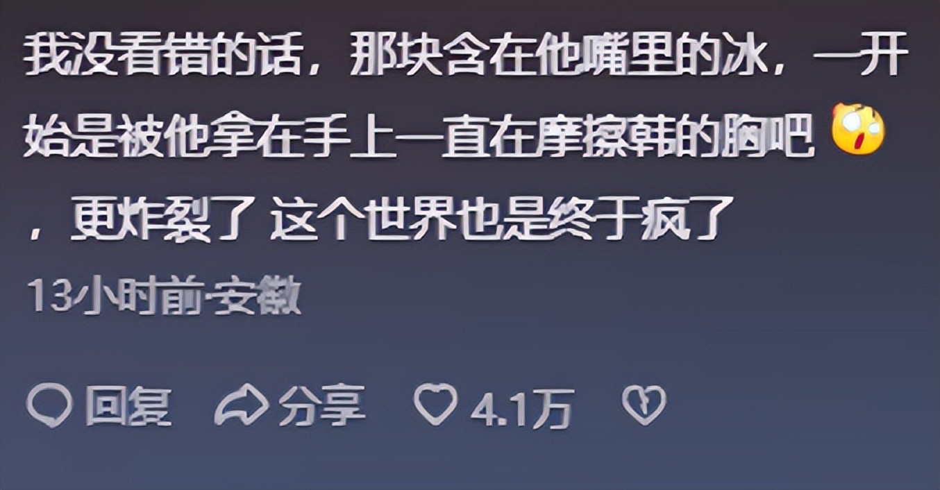 在韩东君展现出惊人忍耐力时,孙杨选择了更为直接而“极端”的方式——通过嘴对嘴的方式,往韩东君口中塞入冰块,以此试图让韩东君因寒冷而发出声音。