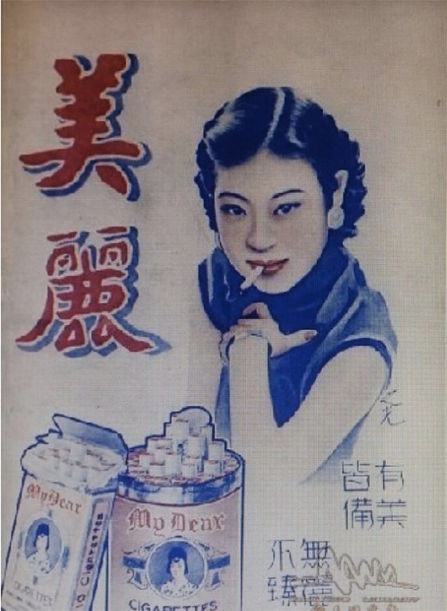 蒋梅英在旧上海“美丽”牌香烟封面的肖像