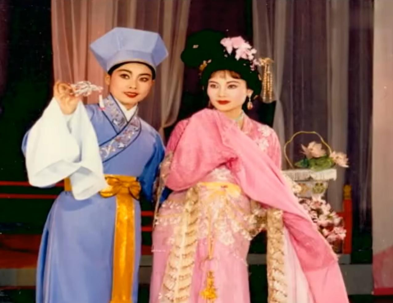 (何赛飞(右)与妹妹同台演出越剧《送花楼会》)