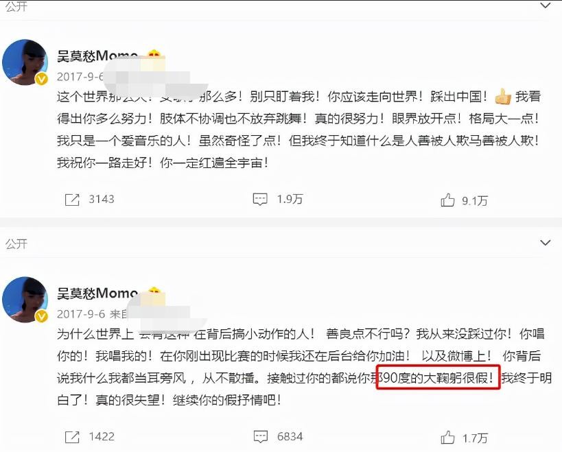 虽然她并没有指名带姓,但张碧晨跳舞时肢体不协调,还有90度鞠躬的标志性动作,让外界纷纷猜测她所指的矛头就是张碧晨。
