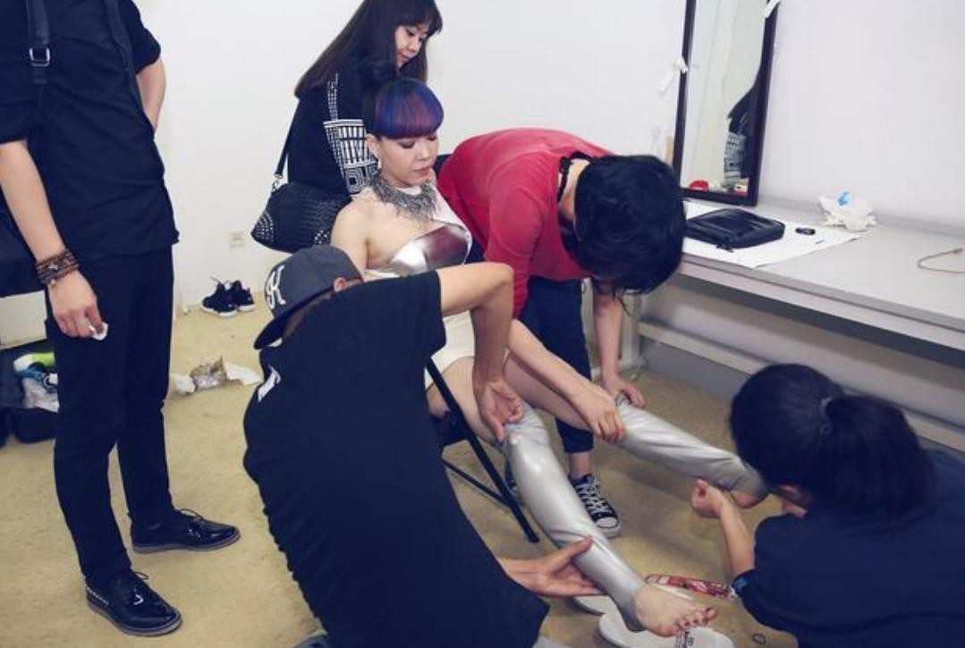 她在台上表演的是歌曲串烧《痒》和《天涯歌女》,唱《痒》的时候,由于服装太紧了,衣服勒得她还有些喘不过气,所以唱“哎呀”就有点颤抖的音色,而这一唱正跟《痒》这个主题对应上了。