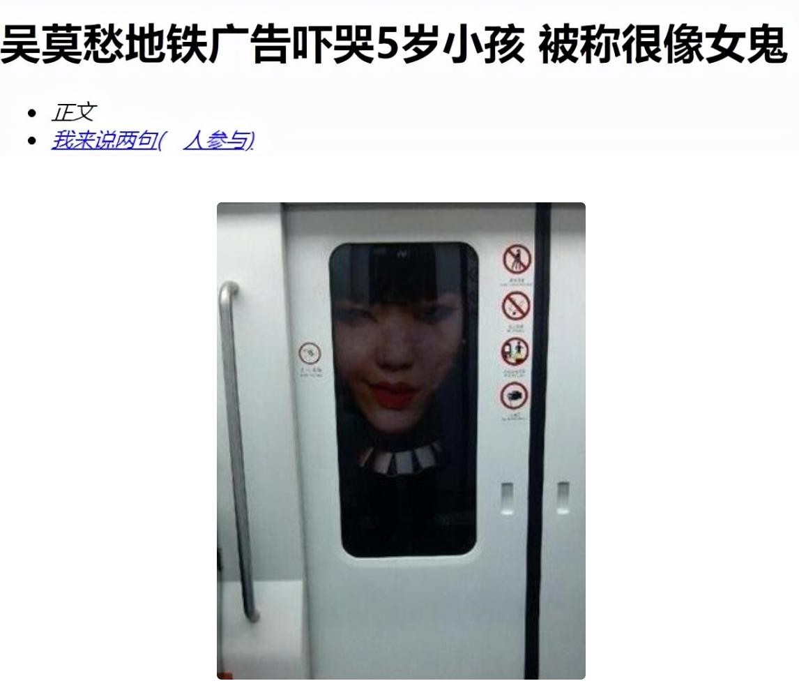 结果,有媒体说她的这一形象被贴到广州地铁站上后,把一个5岁的小孩给吓哭了。