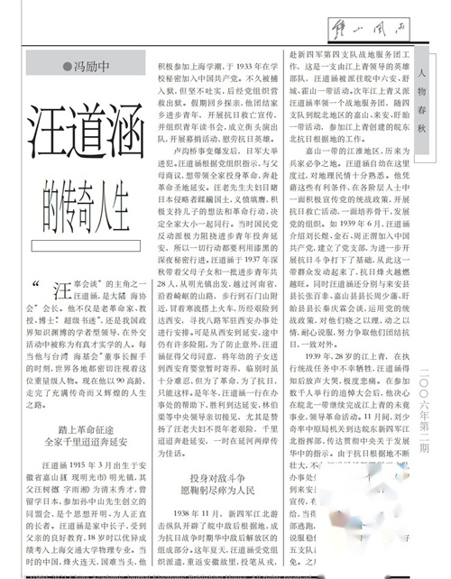 汪道涵的一生,给我们留下了深刻的历史印记,也给我们带来了重要的猜想和启发,他的成长经历和革命事业,无疑是东方大国革命历史中重要的一页,也是我们应当铭记和学习的宝贵精神财富。