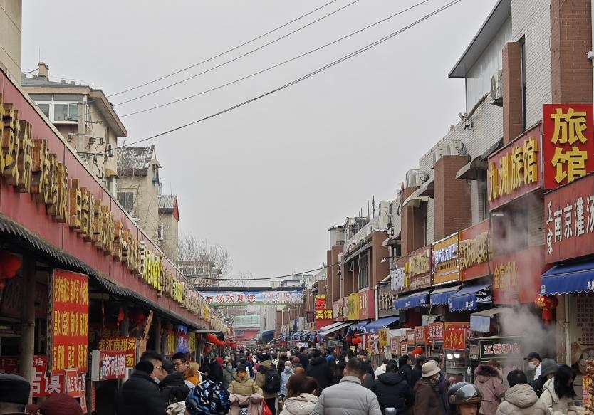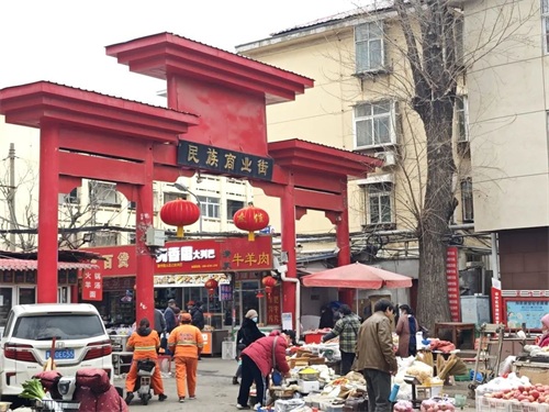 在济南市中区经八路与民族大街交叉口,一个红色大门上写着“民族大街市场”几个大字,不用再找,我们的目的地到了。这是一条济南的老街巷,北起文化西路,南至经十路,短短七八百米,来这里的人群却是熙熙攘攘。