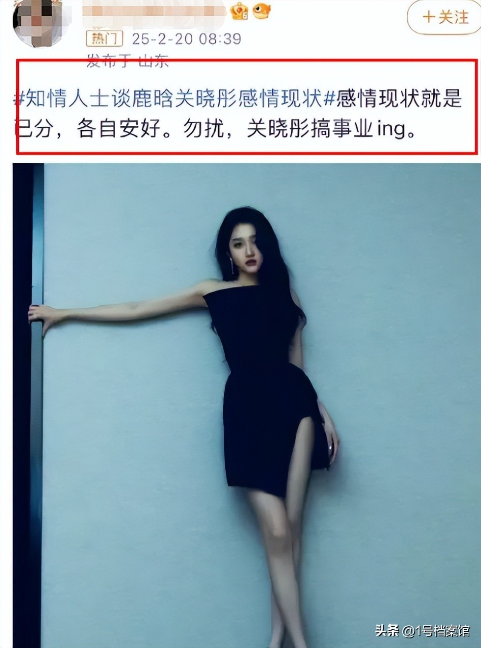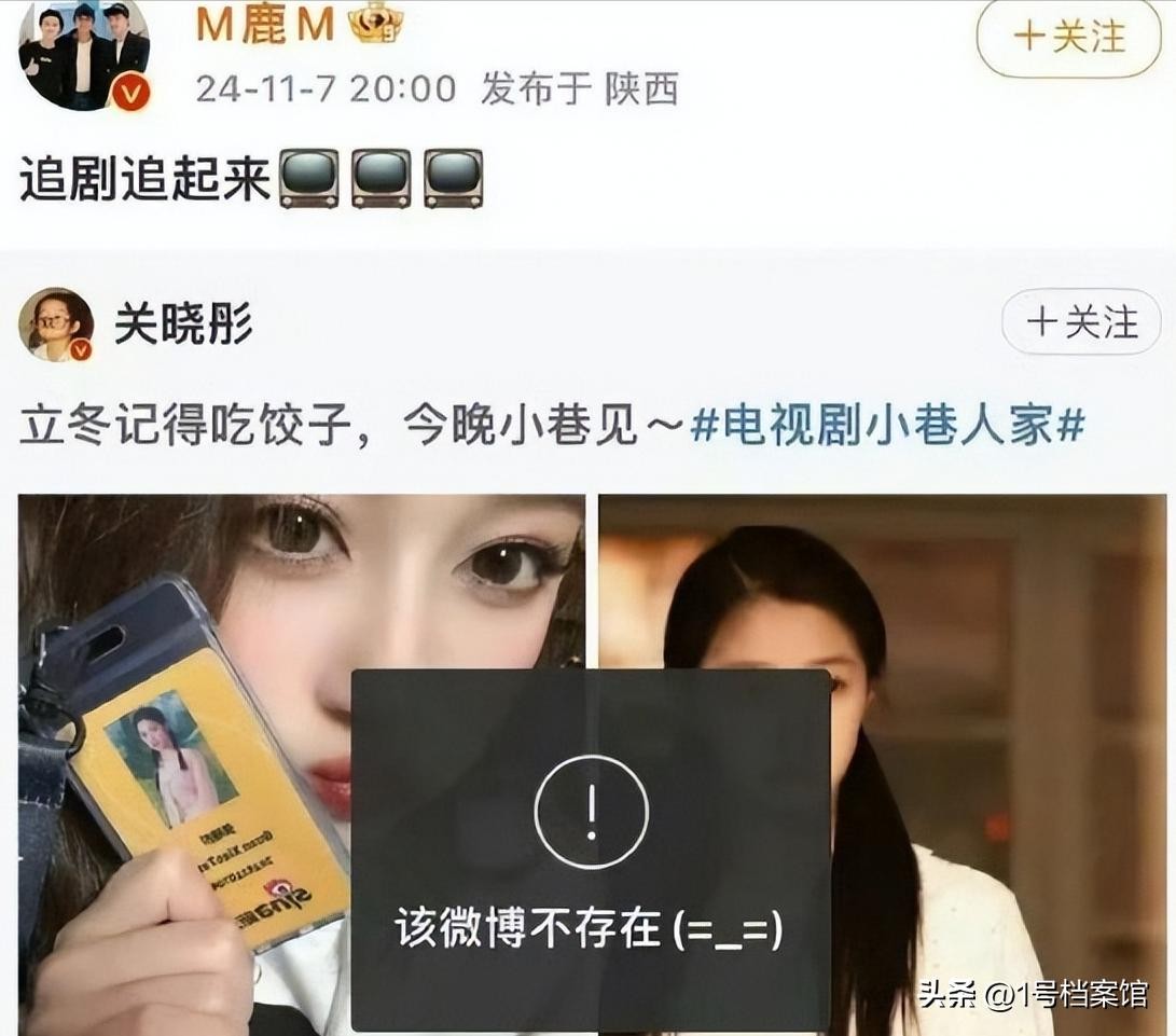 当时关小姐的热播剧正在播出,男方还为其做宣传,但不久后就又删除了,