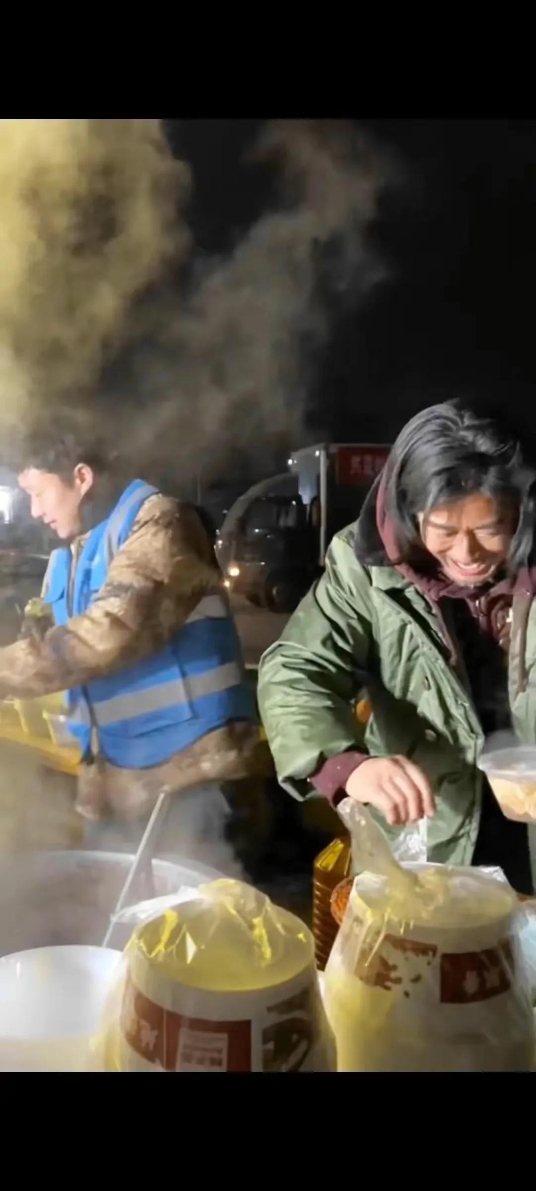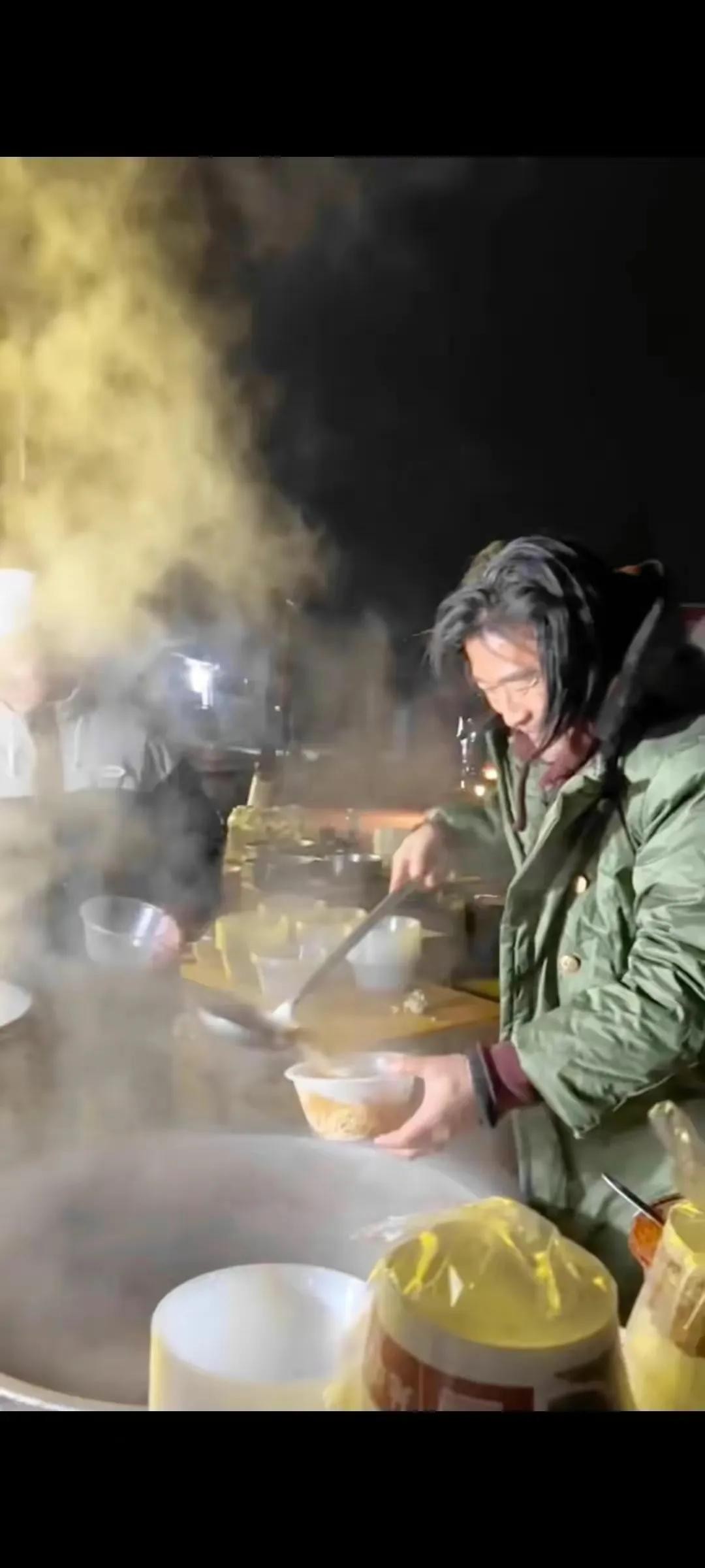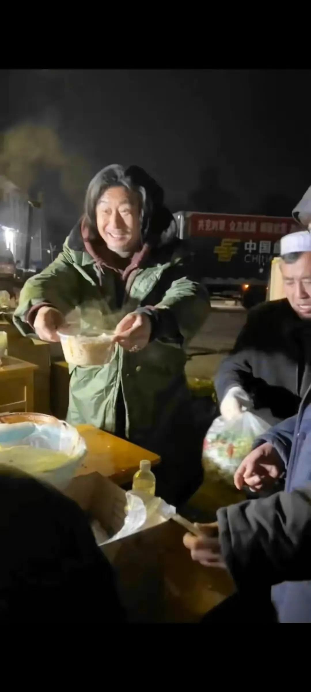 著名老演员孙兴,不但捐款捐物,更是深夜冒着严寒为灾区送热面!