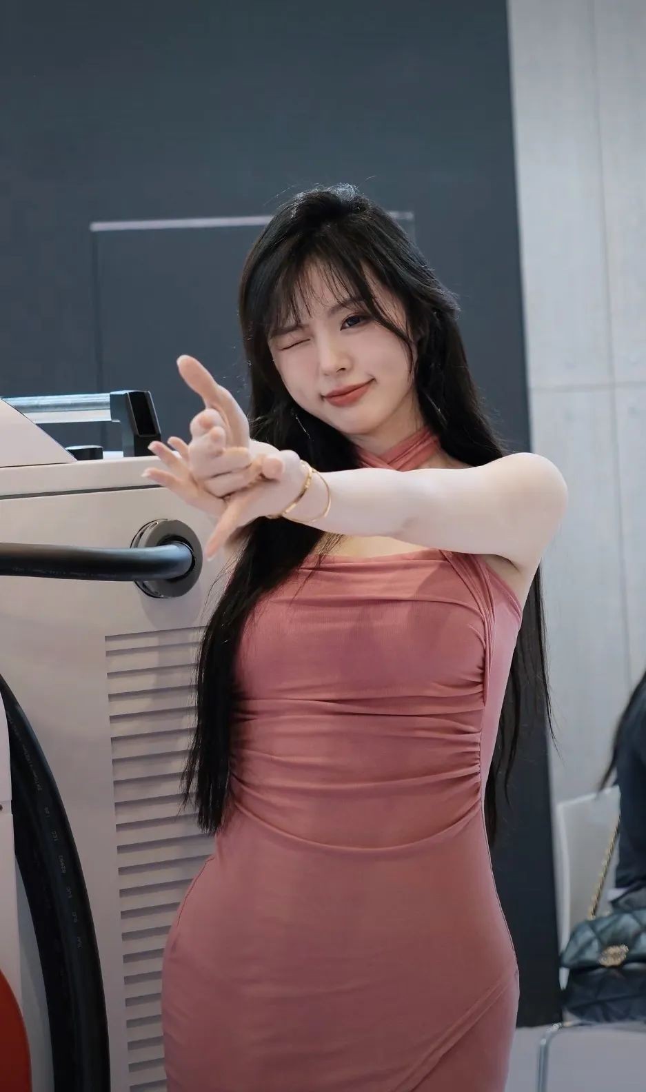 如果全网刷屏的那些穿着礼服长裙的高冷车模让你倍感审美疲劳,那么这位身着粉丝连衣裙,以甜妹造型示人的小叶老师(网名:是糖醋小排骨呀)也会让无法亲赴展会的你感到遗憾。从照片上看,小叶老师的整体气质在当下的车模群体中也是特别少见,不过她的出现与出圈,也让我们看到了看似高冷的车模,同样可以展现出更多甜美的特点。无论是闪闪发光的大眼睛还是可爱迷人的pose,网名“是糖醋小排骨呀”的小叶老师,就跟糖醋排骨一样有种酸酸甜甜的“恋爱感”~