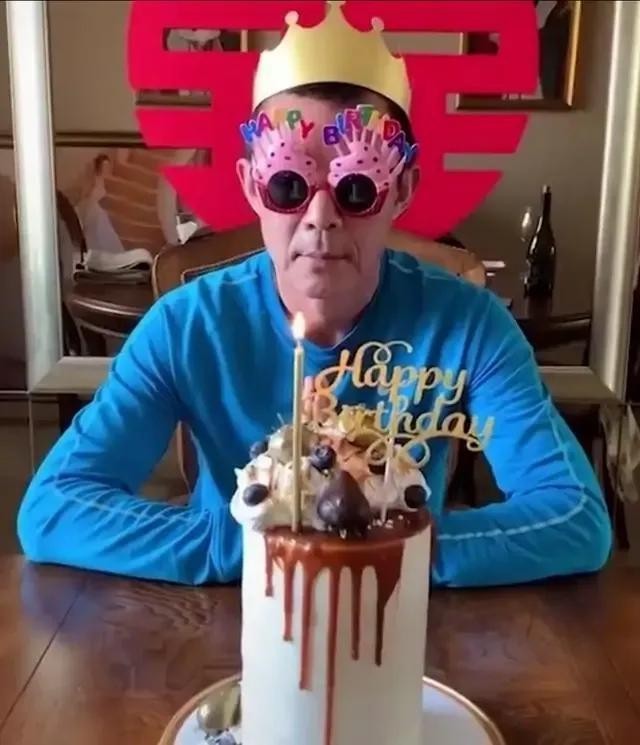 在生日这天,侯勇还搞怪装扮,应该过得很舒坦。