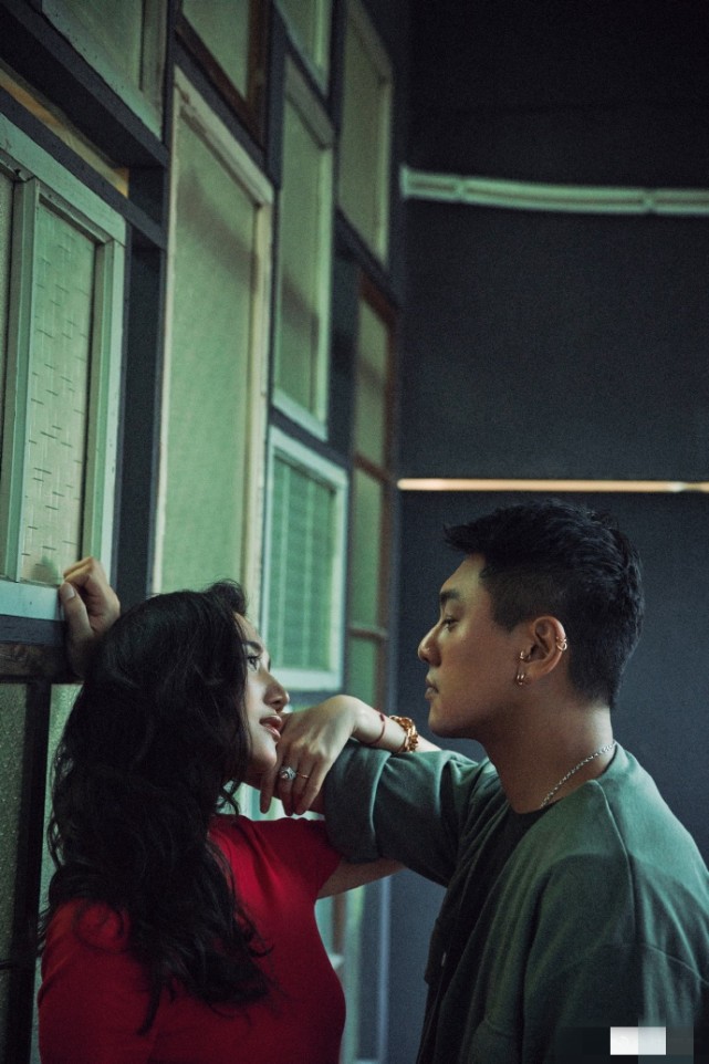 照片中,韩雯雯化着精致妆容,波浪卷发型女人味十足,一袭红装惹火惊艳,的确是很美啦。而朱孝天则戴上酷酷的耳饰,瞬间充满炫酷感。夫妻俩还上演了一出甜蜜壁咚,对视画面甜炸屏。