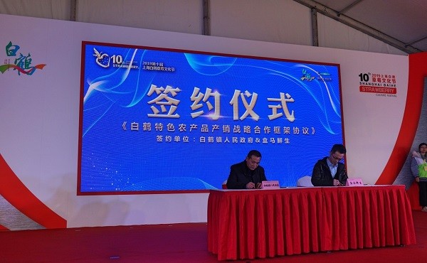 图说: 白鹤镇人民政府与盒马签订了农产品产销战略协议