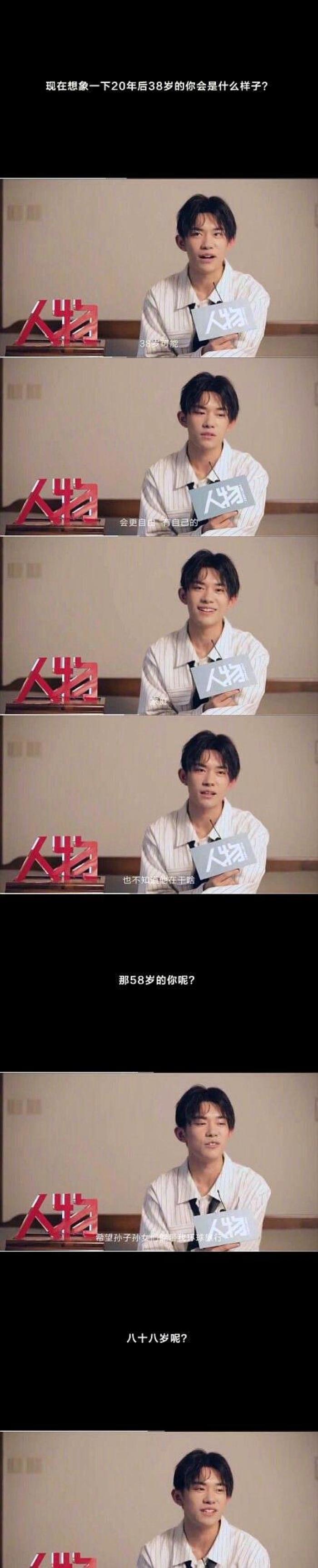 而当被问到想象一下20年之后38岁的自己是什么样子时,千玺回答道38岁可能更自由,而且已经有了自己的家庭,也不知道自己在干啥,非常符合大佬回答问题的作风了啊,而在回答58岁的时候,千玺的回答竟然是希望孙子孙女能够带自己去环球旅行,原来千玺在58岁就想要三世同堂了啊,而在回答88岁时,大佬的回答也是非常直接了啊,直接就说按照我们这个生活习惯能活到88岁应该已经不错了!