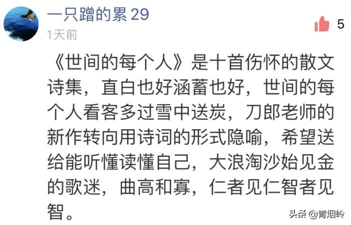 昨天发文推荐刀郎的新歌,说起这次的新专辑,有粉丝留言称这次的10首歌是10首散文诗,意境非常高远。