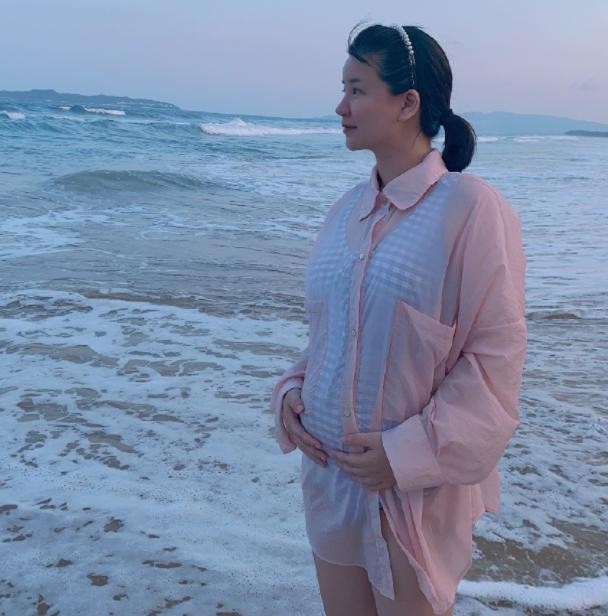 直到6月1日那天,她晒了一张海边照,两手托着肚子,并配文:“我的宝贝们~六一快乐。”