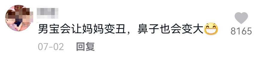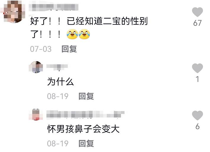 她在7月份晒了一张照片,说自己有了二胎后鼻子越来越大,网友们猜测这个孩子是男孩。