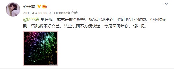 四年前乔任梁去世时,陈乔恩发文中说:“爱我的人,会变成星星守护著我,我不知道你变成星星了吗?” 我想乔任梁应该变成星星感受到了这份真挚,默默地守护乔恩了吧!