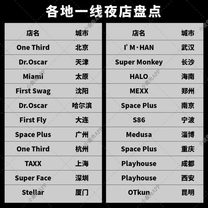 值得关注的是,电子音乐场景在中国各大城市也正在丰富化和细分化,各种各样的电音Club拥有各自稳固的消费群体还是能够生存下去。与此同时,当下一波潮流年轻人,其社交需求和音乐需求不再局限于电子音乐,这也是为什么在一线和新城市中,Hip-Hop Club越来越火热的原因。