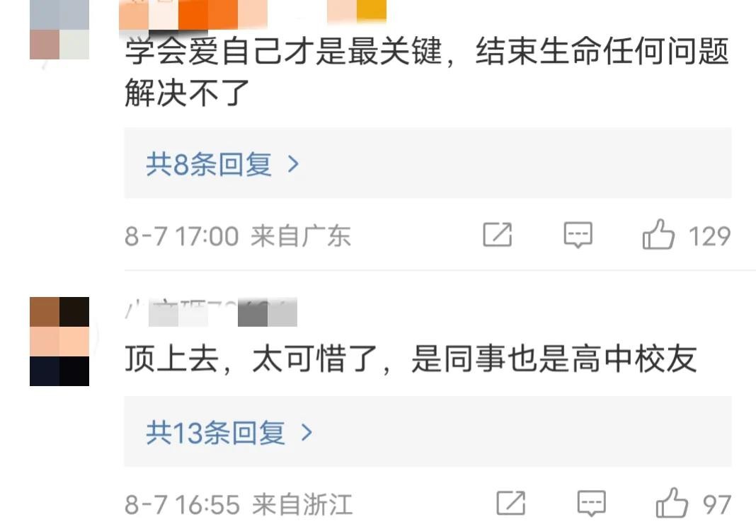 有网说: 学会爱自己才是最关键,结束生命任何问题解决不了。