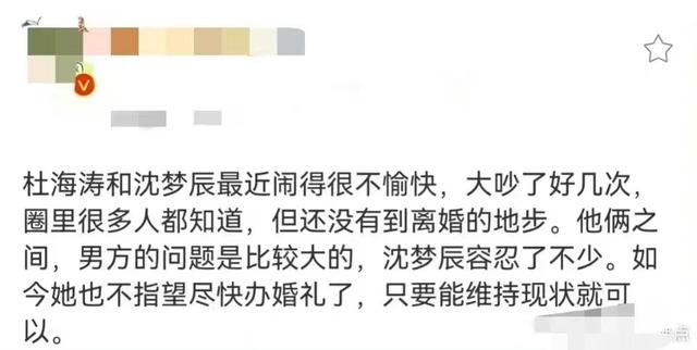 沈梦辰老公叫什么名字(曝杜海涛沈梦辰疑婚变)