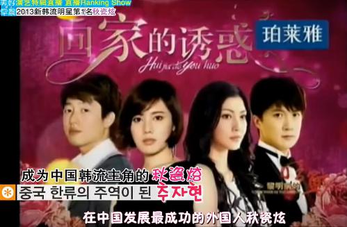 不同于多数韩流明星,秋瓷炫虽然在韩国已经出道好几年,但一直没闯出名堂,没有主演的代表作,也没什么人气,凭什么来?