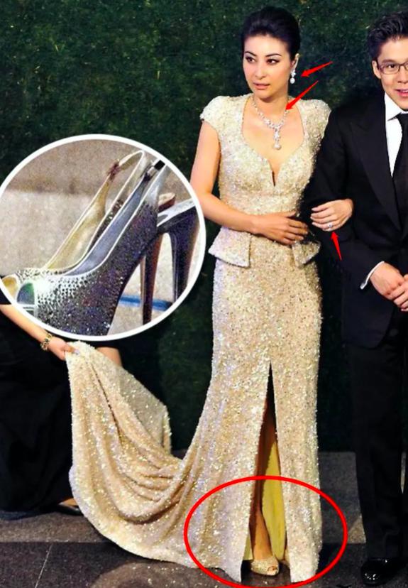 配搭的钻戒,价值 1100 万,一双定制水晶鞋,上面的钻石价格就超过了 600 万。