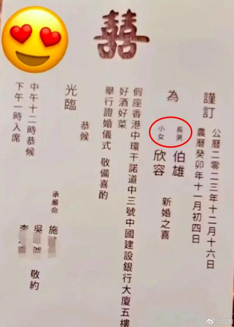 去年吴千语和施伯雄领证,在港岛举行证婚仪式,施家广发请帖,请帖上面的用词就是 " 长男 "。