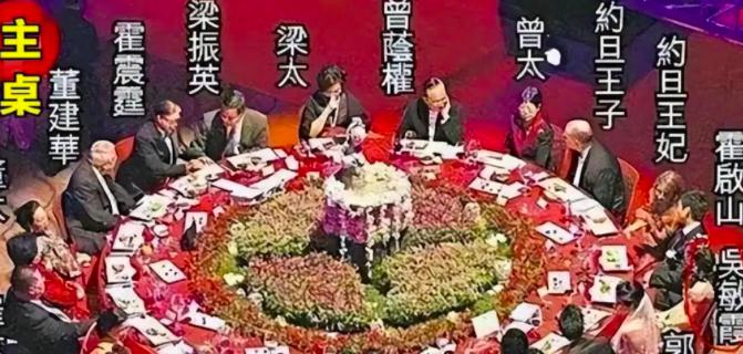 背景是赌王儿子何猷龙与维他奶创办人罗桂祥的孙女罗秀茵大婚,何罗两家一连两天大宴亲朋、富豪,整场婚礼前后花费六千多万元,全城轰动,而这正是某天晚宴的照片,当时名流云集,聚在窗边看焰火。