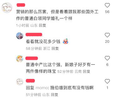 还有的网友觉得吴千语全身上下一件拿得出手的珠宝都没有,不太符合豪门婚礼的规格。