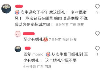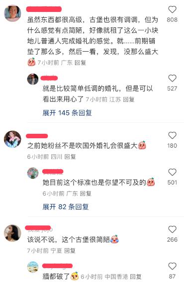 不过,吴千语高兴了,贵妇聚集地小红书上部分网友,却认为吴千语这场婚礼办的有点寒酸了,像乡村民宿风。