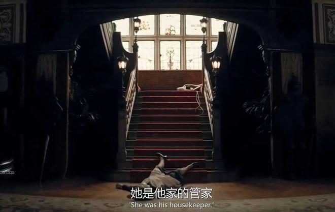 第一起是男爵的女管家,从楼梯被推了下来," 血流成河 ",尸体就横躺在楼梯上。