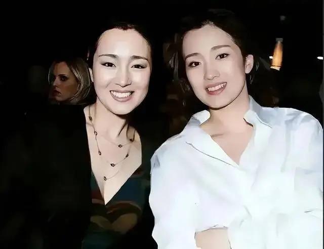 两个人坐在一起合影,都难以分辨出真正的巩俐。