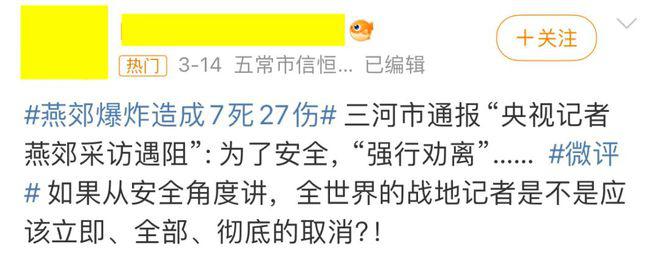 燕郊突发爆炸后,3 名央视记者奔赴第一现场做报道。