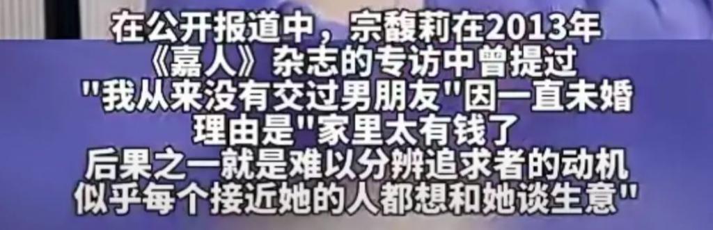 虽然宗馥莉采访中表示过,自己主要精力是搞事业,感情的事不强求,也没有太大的动力。