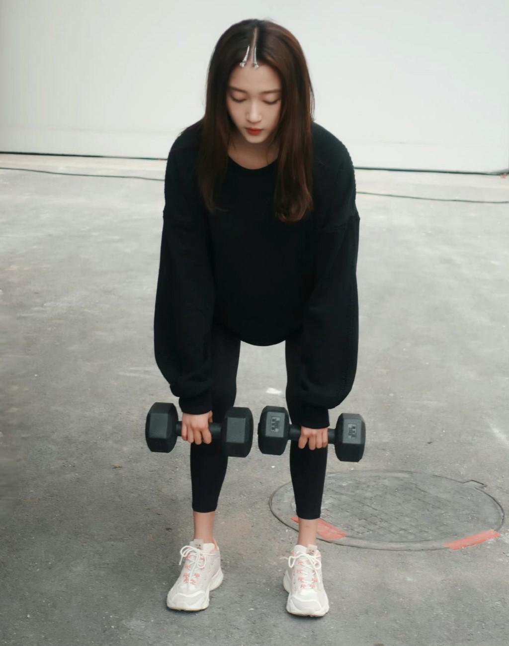 关晓彤片场健身,一眼望去全是腿,纤细笔直的漫画腿绝了