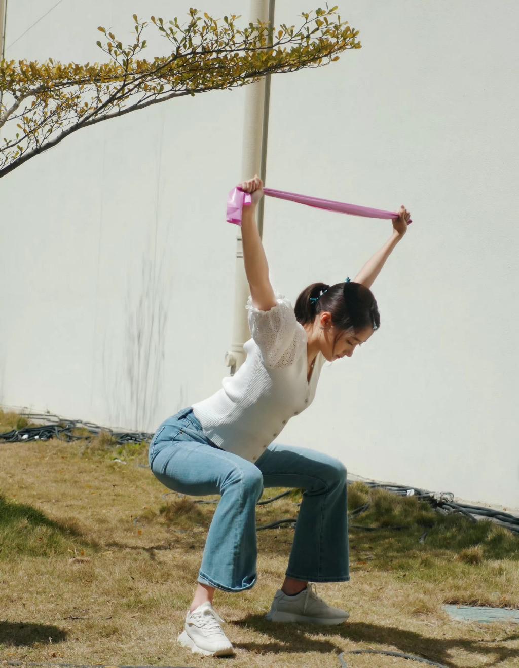 关晓彤作为演员需要上镜,因此对身材管理十分严苛。除了她之外,许多女艺人也为自己的身材作出不少努力,所以在片场健身也成为了她们的日常,可以说是十分自律了。