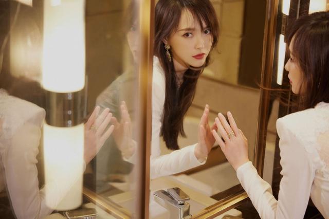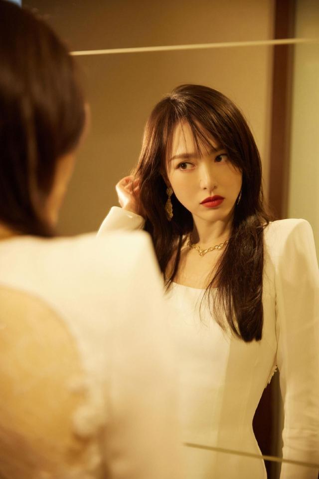 唐嫣镜像写真优雅大气 着包臀连衣裙长发拂面红唇吸睛