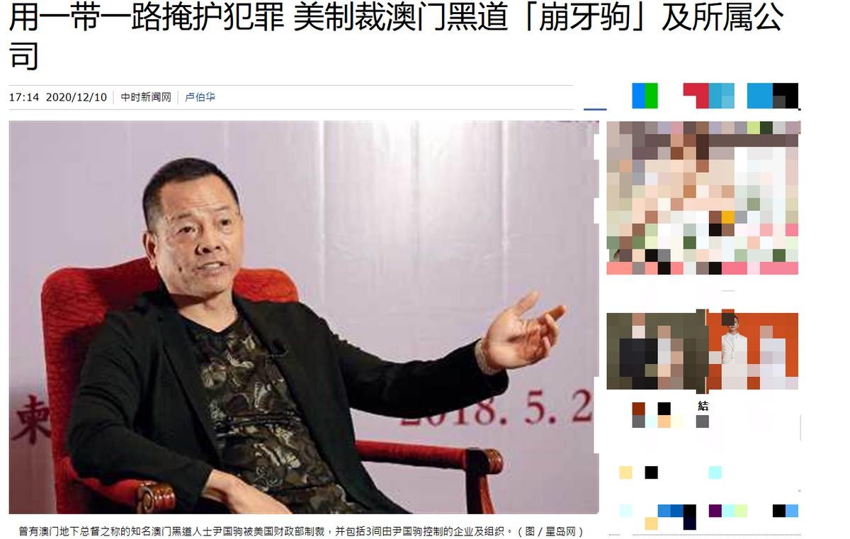 信息来源:中时新闻网于2020年12月10日发布的——《用一带一路掩护犯罪 美制裁澳门黑道「崩牙驹」及所属公司》