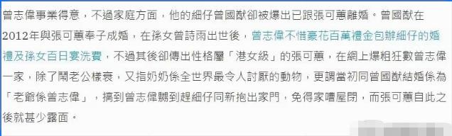 但是媒体也曝出,曾志伟已经把儿子儿媳赶出家门,只留孙女跟他们同住。