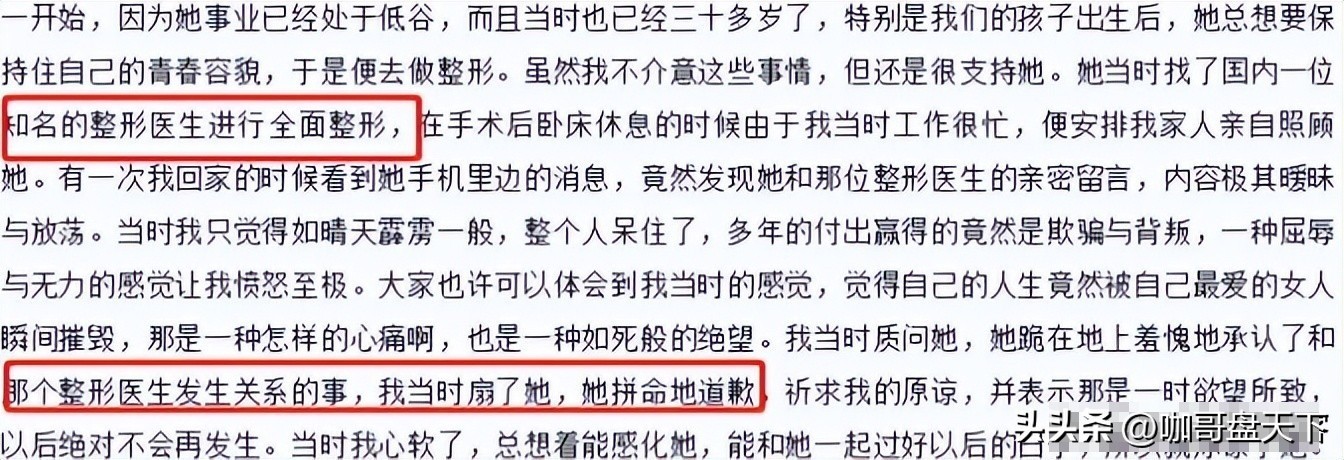 陈红生完孩子,模样变化挺大的,她就去整了好几次容,想维持原来的样子。期间,他还注意到陈红的手机里,跟整形医生聊天挺频繁的,感觉有点暧昧。