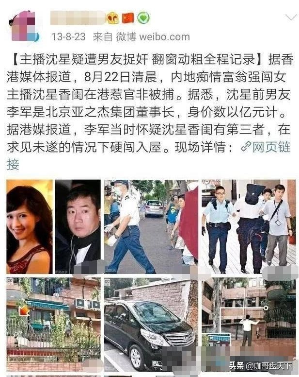 2013年,香港媒体突然爆出大料,说是陈红那个歌手的丈夫李军,竟然翻墙去骚扰凤凰卫视的主持人沈星,结果被警察给带走了。