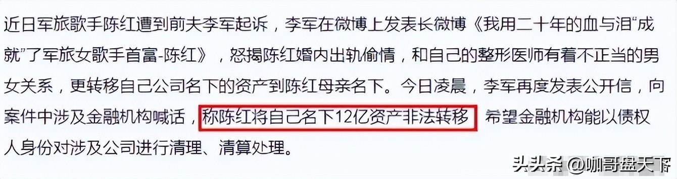 李军透露,陈红实际上是个骗子。他们所谓的离婚,其实是陈红故意设计的骗局,她假装离婚,让他把名下12亿的财产过户给了她。