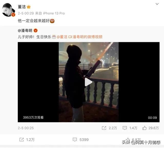 过去11年了,董洁总算是释怀了,不仅让儿子和潘粤明两父子相见,还把顶顶和潘粤明一起放烟花的微博转发了。